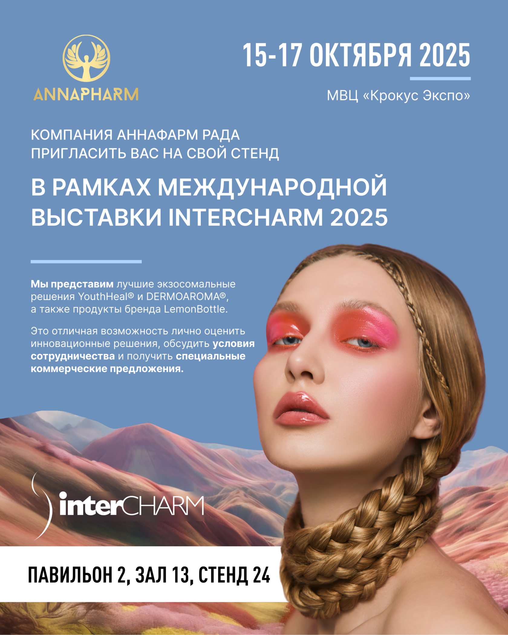 Наша компания AnnaFarm приняла участие в крупнейшей бьюти-выставке InterCHARM 2025, представив сразу три инновационных бренда: Lemon Bottle, Dermoaroma и YouthHeal. 🍋💧🌿