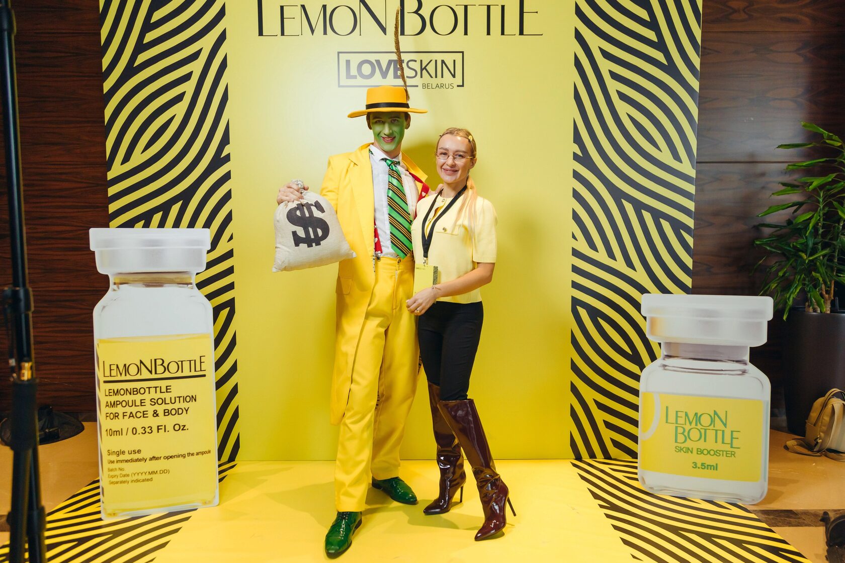 Гостей встречала атмосфера настоящего праздника красоты: стильная фотозона в фирменных жёлтых тонах Lemon Bottle, акценты лимонного декора и неожиданный герой вечера — сам “Маска” в ярком жёлтом костюме, который создавал настроение, фотографировался с гостями и поднимал всем настроение. 💛