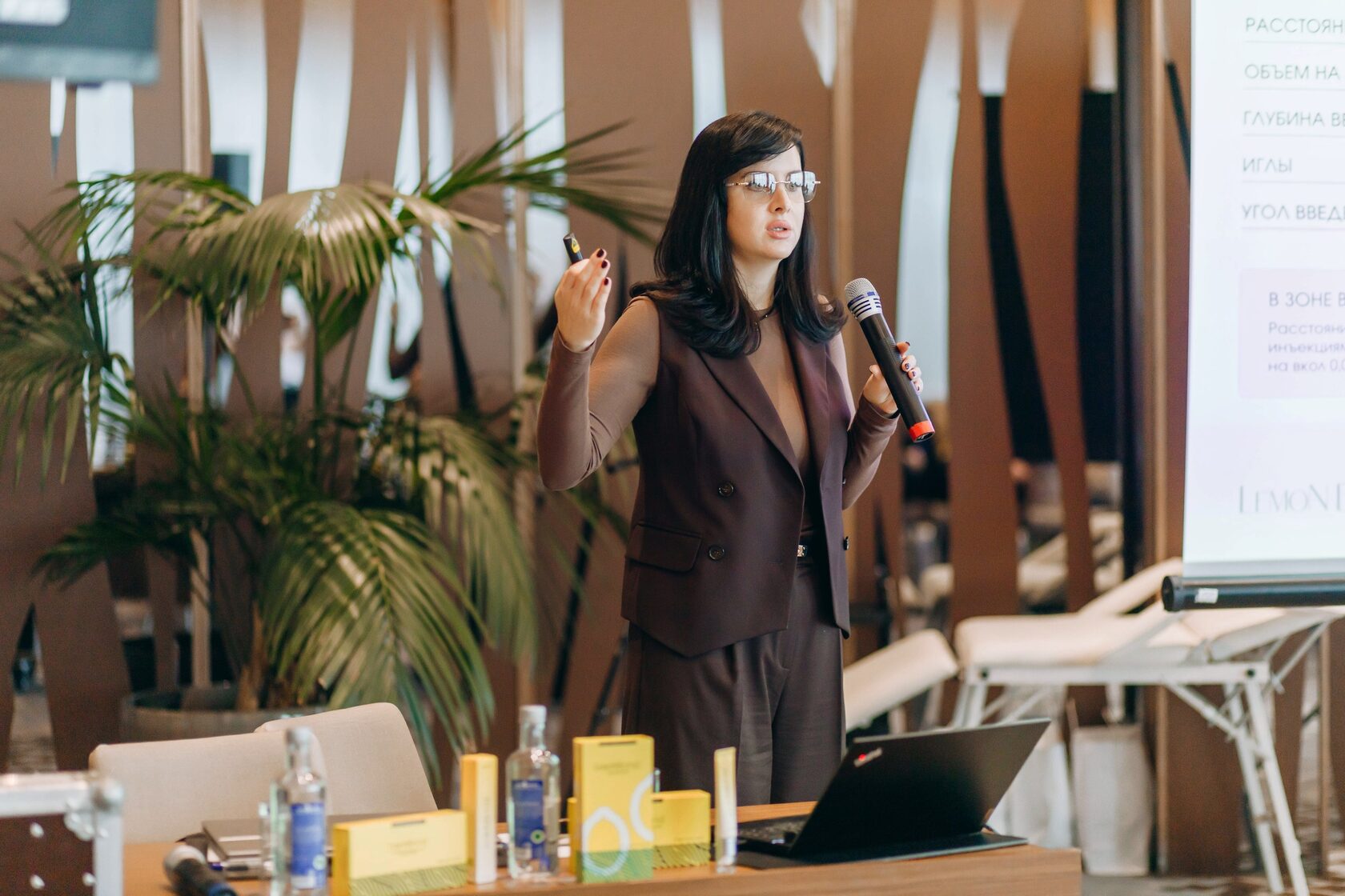 С научно-практическим докладом выступила Юлия Фирсова, рассказав о механизмах действия, составе и преимуществах препаратов Lemon Bottle, а также провела демонстрацию процедур, показав, как эффективно применять продукты в практике врача-косметолога.